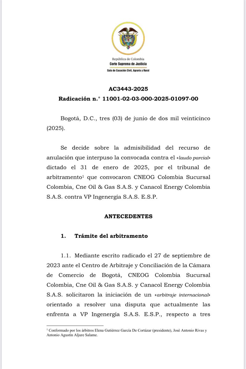 Todo se originó cuando Juan Guillermo Mendoza Gómez, abogado de Canacol, en desarrollo del tribunal de arbitramento con VP Ingenergía, aseguró que recibió información de carácter intimidante orientada a que se apartara de la representación judicial de la compañía Canacol.