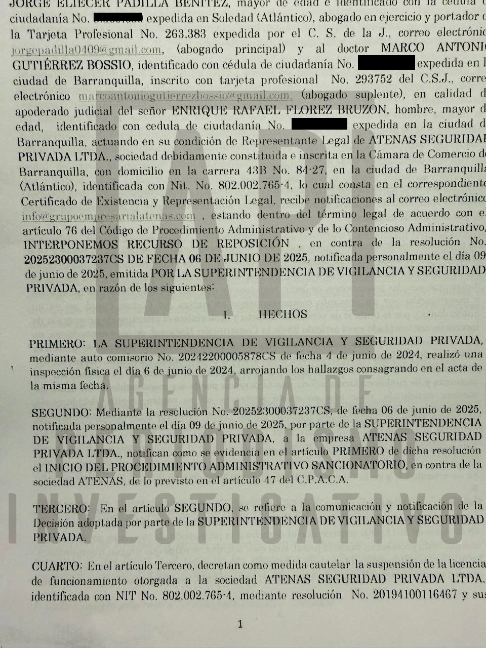 Lost Prevention Ltda. no es la única empresa de vigilancia y seguridad privada cuestionada por vínculos con cabezas del mundo del hampa, como el “Clan Vega Daza”, o por presuntos manejos irregulares. Otra de las empresas en la mira es Atenas Seguridad Privada Ltda., con sede en la ciudad de Barranquilla.