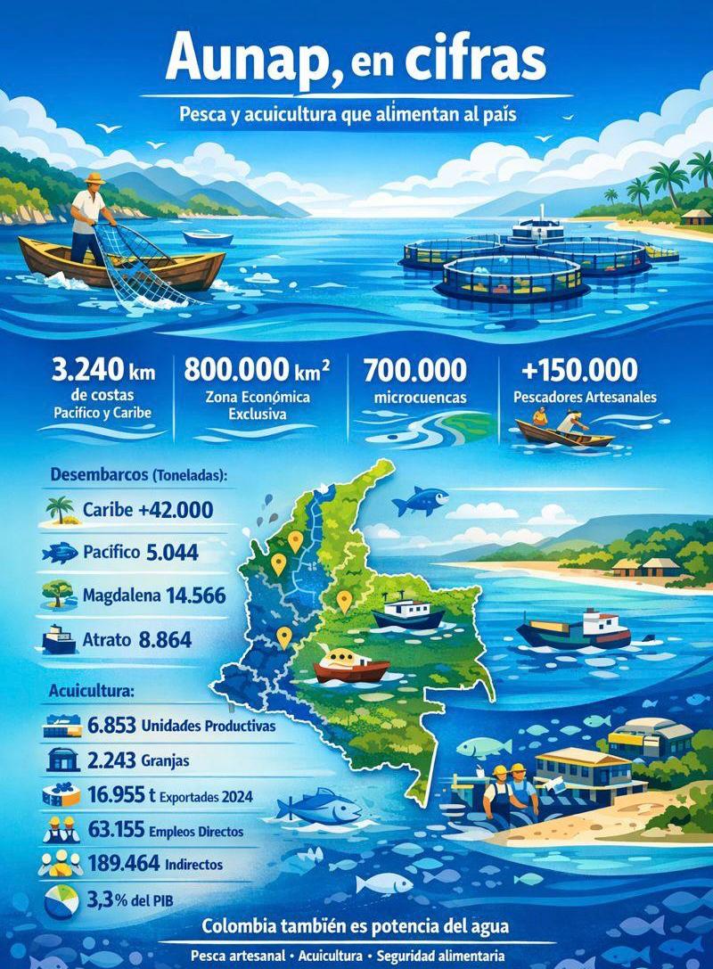 El primer bloque de cifras que la entidad puso sobre la mesa fue el de fomento. La Aunap reportó que priorizó a pescadores artesanales y acuicultores de subsistencia, con 720 organizaciones beneficiadas a nivel nacional.