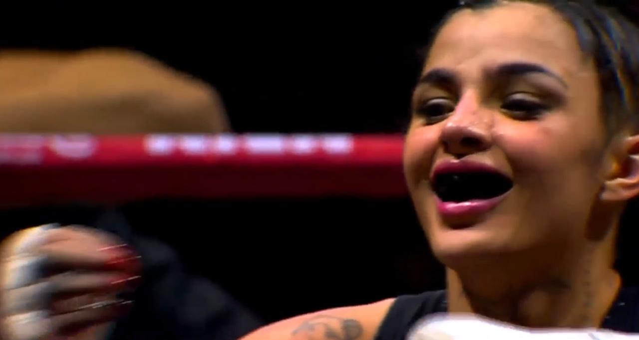 La colombiana lo intentó, a pocos segundos de finalizar el combate fue vencida en cuarta pelea de la velada. 2.8 millones vieron el combate.