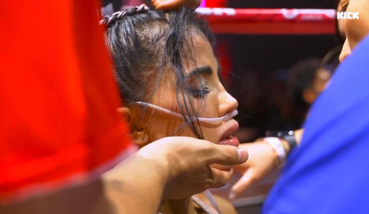 En el tercer asalto, un intercambio en el que Karely conectó con claridad dejó a Karina visiblemente afectada. El equipo médico de Karina ingresó al ring para valorarla, y se decidió administrarle oxígeno ante signos de dificultad. La pelea fue detenida por el árbitro, dictando el nocaut técnico a favor de Karely Ruiz.