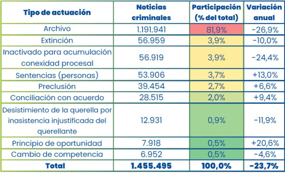 Las cifras revelan un círculo vicioso: millones de denuncias que no avanzan, una utilización masiva del archivo como herramienta de gestión y una justicia de fondo que se aplica en un porcentaje relativamente menor de los casos.