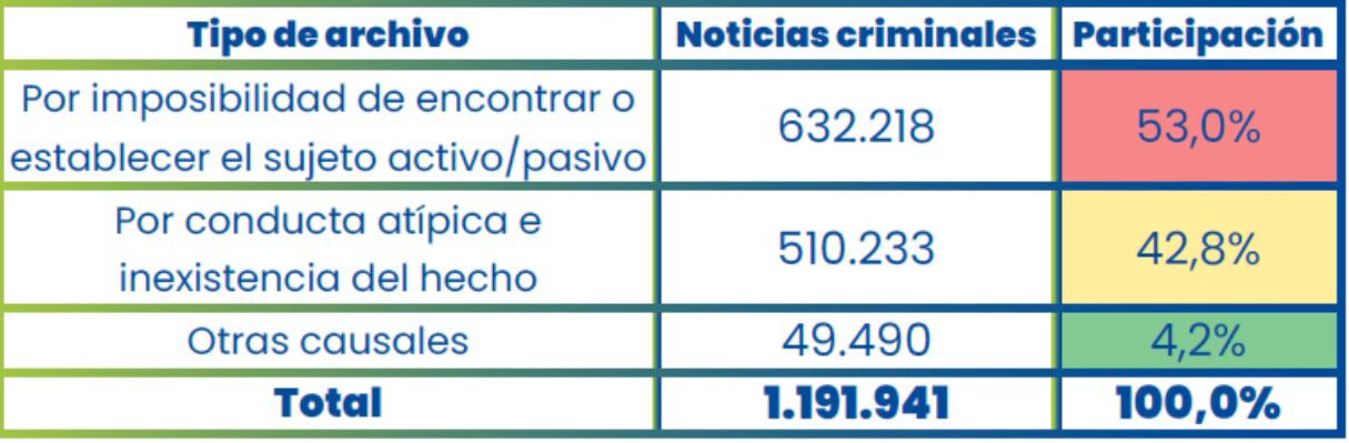 El 42,8% se archivó por “conducta atípica e inexistencia del hecho” y el 4,2% restante a otras causales de archivo.
