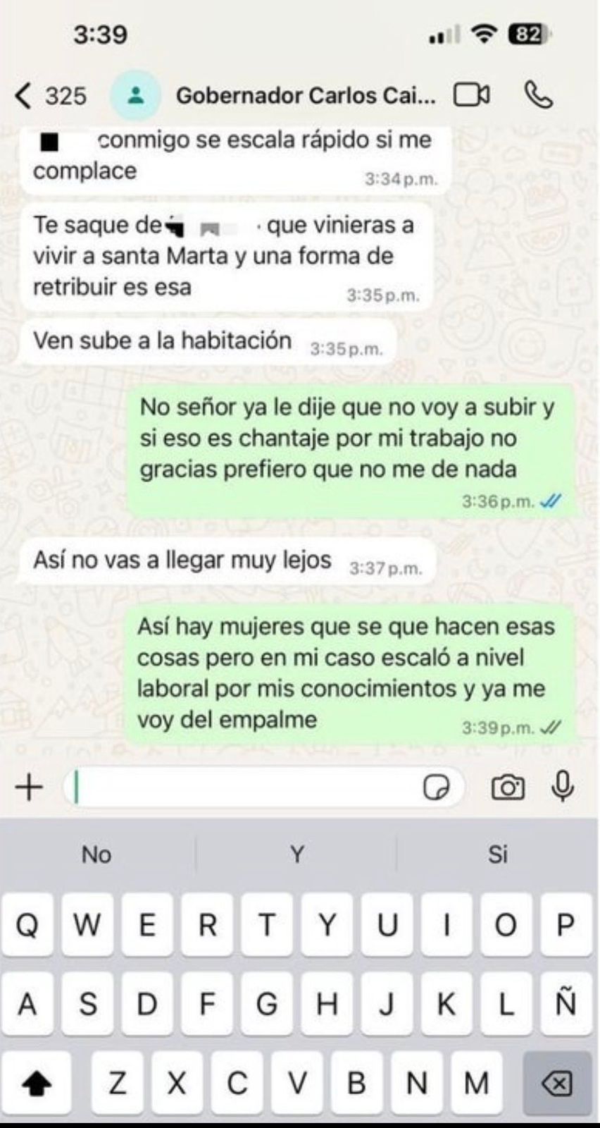“La única forma de poder escalar dentro del movimiento era acceder a las pretensiones que él nos pedía”, relató la mujer, quien aseguró que tras rechazar las insinuaciones, su carrera política se estancó. El testimonio fue respaldado por chats atribuidos a Caicedo, en los que se leen frases como: “conmigo se escala rápido si me complace”.